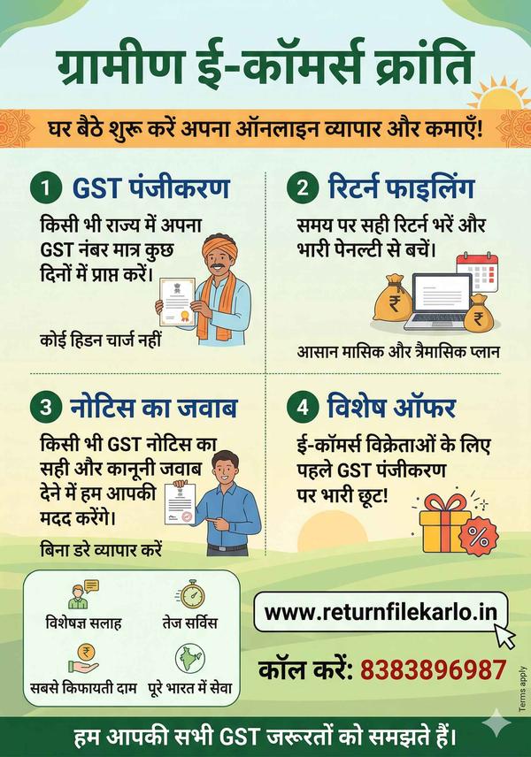 Return File Karlo (An ISO 9001:2015 Certified Firm) Services is an “One Stop Solution” company for all Commercials & Legalities, Business Consultation and Taxation matters. The main objective of our business is to address the pain points identified across millions of startups, established businesses, Brands expanding to new locations, anyone foreigner venturing in our country, new and existing Sma...